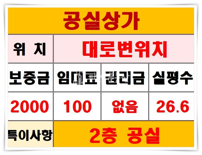 현 임대 매물의 경우 권리금이 존재하지 않는 공실상가